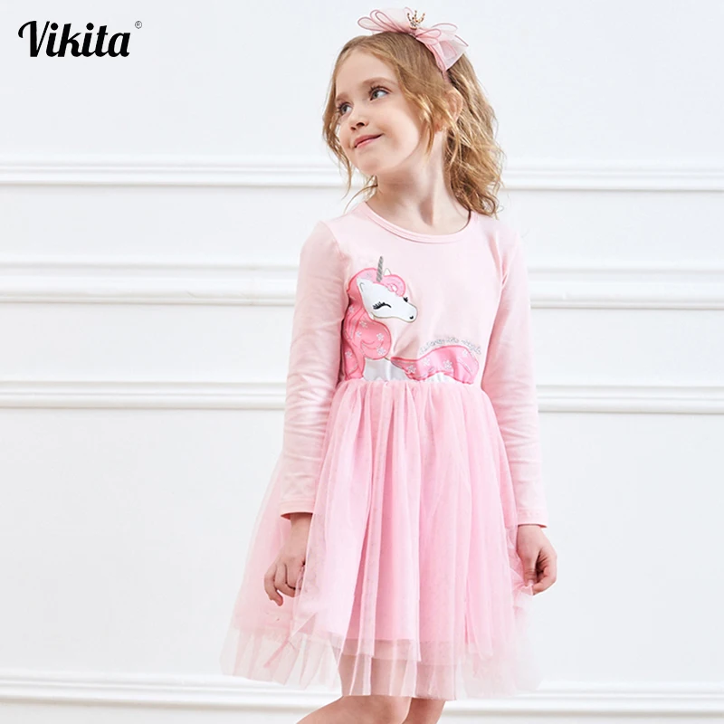 wherecanyoubuy VIKITA Girls Dress Long Sleeve Kids Flower Dresses Children Unicorn Vestidos 2020 Girls Dresses Aut